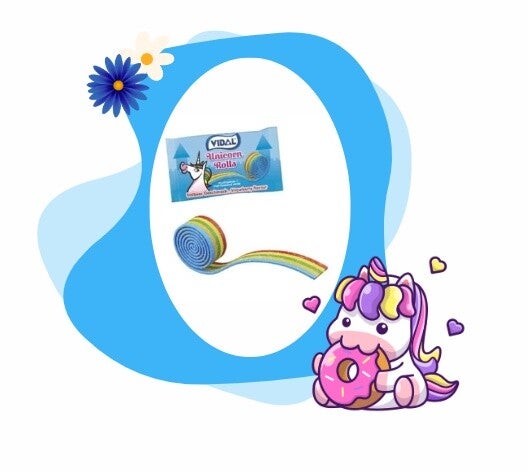 La Maxi Ceinture (60 cm) en bonbon gélifié citrique enroulée et emballée individuellement dans un emballage Licorne - Parfum Fraise